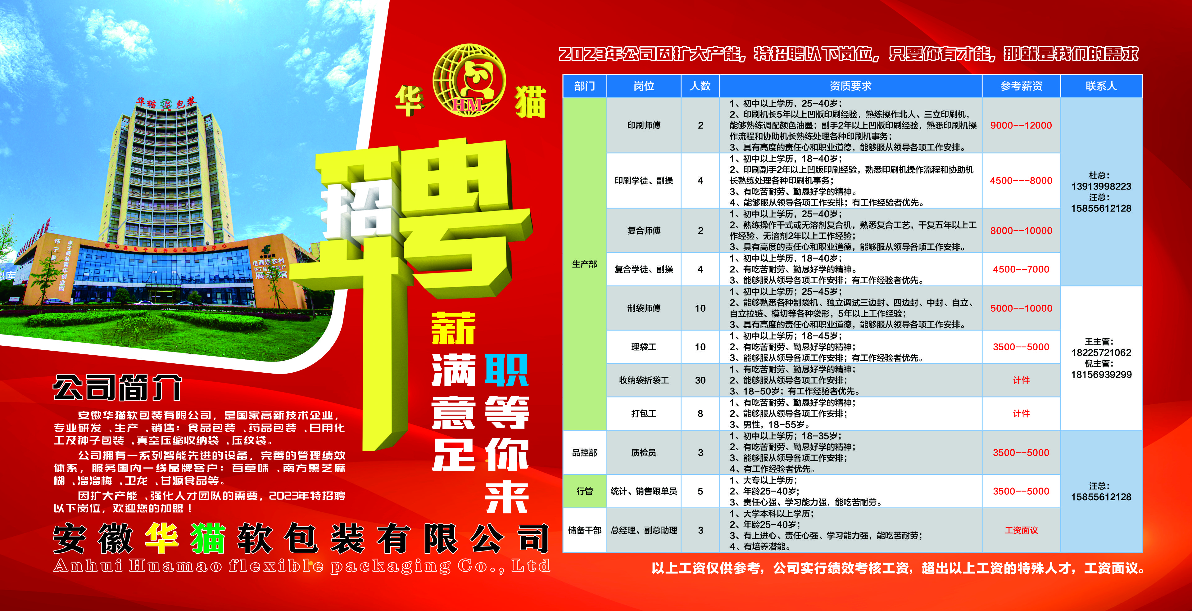 安徽华猫软包装有限公司2026最新招聘信息